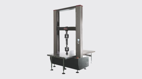 該機型主機架由底座、兩根固定橫梁、一根移動橫梁和四根光杠構成門式框架結構;傳動加載系統采用日本松下伺服電機、控制系統及同步齒形帶減速裝置,帶動高精密滾珠絲杠轉動,再驅動移動橫梁實現加載,造型美觀,穩定性好、剛性大,控制精度高、高效、噪音低、易保養維護等特點。